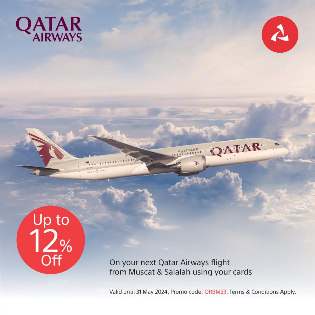 It may be noted that all Bank Muscat Credit, Debit and Prepaid cardholders can avail the exciting discount on Qatar Airways website and mobile app by using the promotional code “QRBM23” at the time of booking their tickets. This offer is in addition to the exclusive travel benefits already provided by the bank to its customers. These include the exceptional banking experience and travel benefits available to Asalah Priority Banking and Al Jawhar Privilege Banking Credit cardholders.