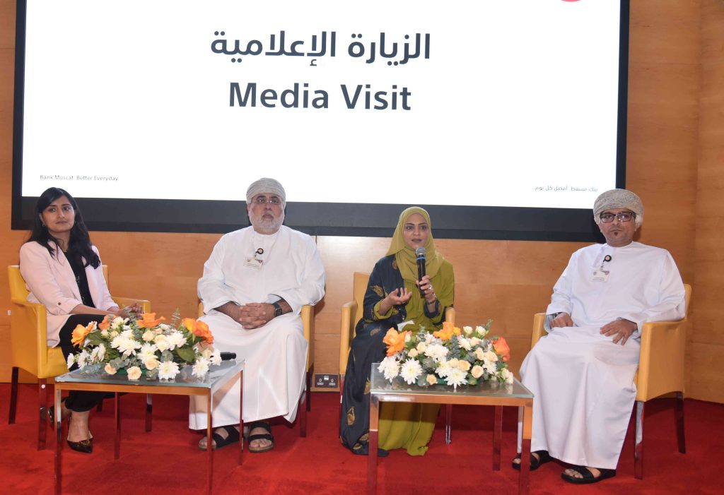 In this context, as a part of its periodic series of media visits, the Bank organized a media visit to showcase the latest advancements and updates within the Banking group, specifically aimed at acquainting institutions with these developments and new services. The gathering took place at the Bank’s Head Office in Airport Heights and was attended by Ilham Murtadha Al Humaid, General Manager of Corporate Banking at Bank Muscat, along with several Bank executives, journalists, and media representatives from various media channels.